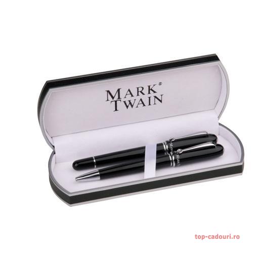 Mark Twain rollerpen si stilou de inalta calitate cu penita din otel superior gravat, in cutie cadou...