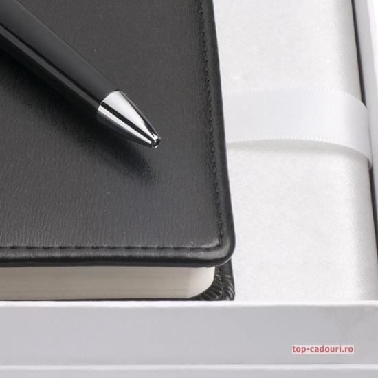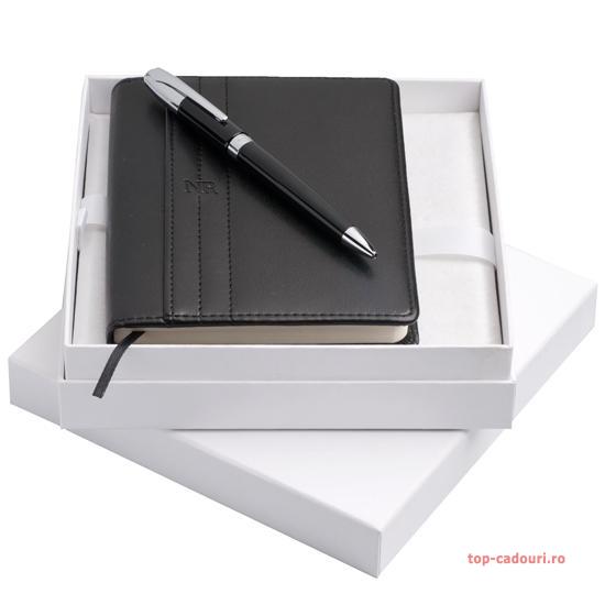 Setul se remarca prin eleganta si sobrietate, culorile neutre si combinatia de negru cu argintiu confera distinctie.