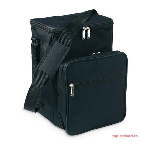 Geanta este confectionata din poliester 600D si captusita cu peva, pentru o izolare mai buna.